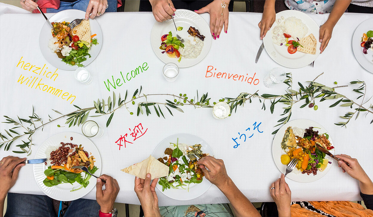 Visit a restaurant that serves different ethnic foods, a cross-cultural coffee or boba shop, or an international food market, and start conversations in those places.